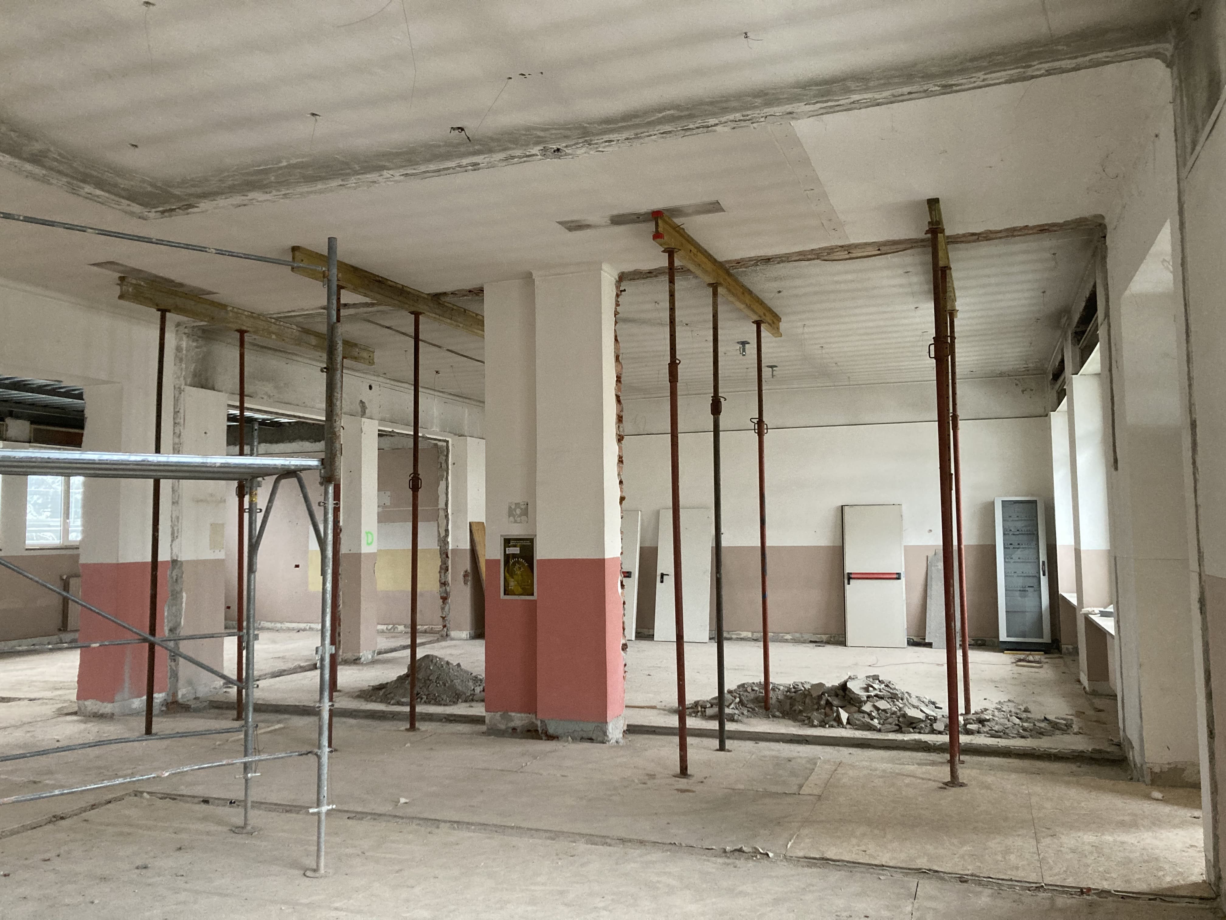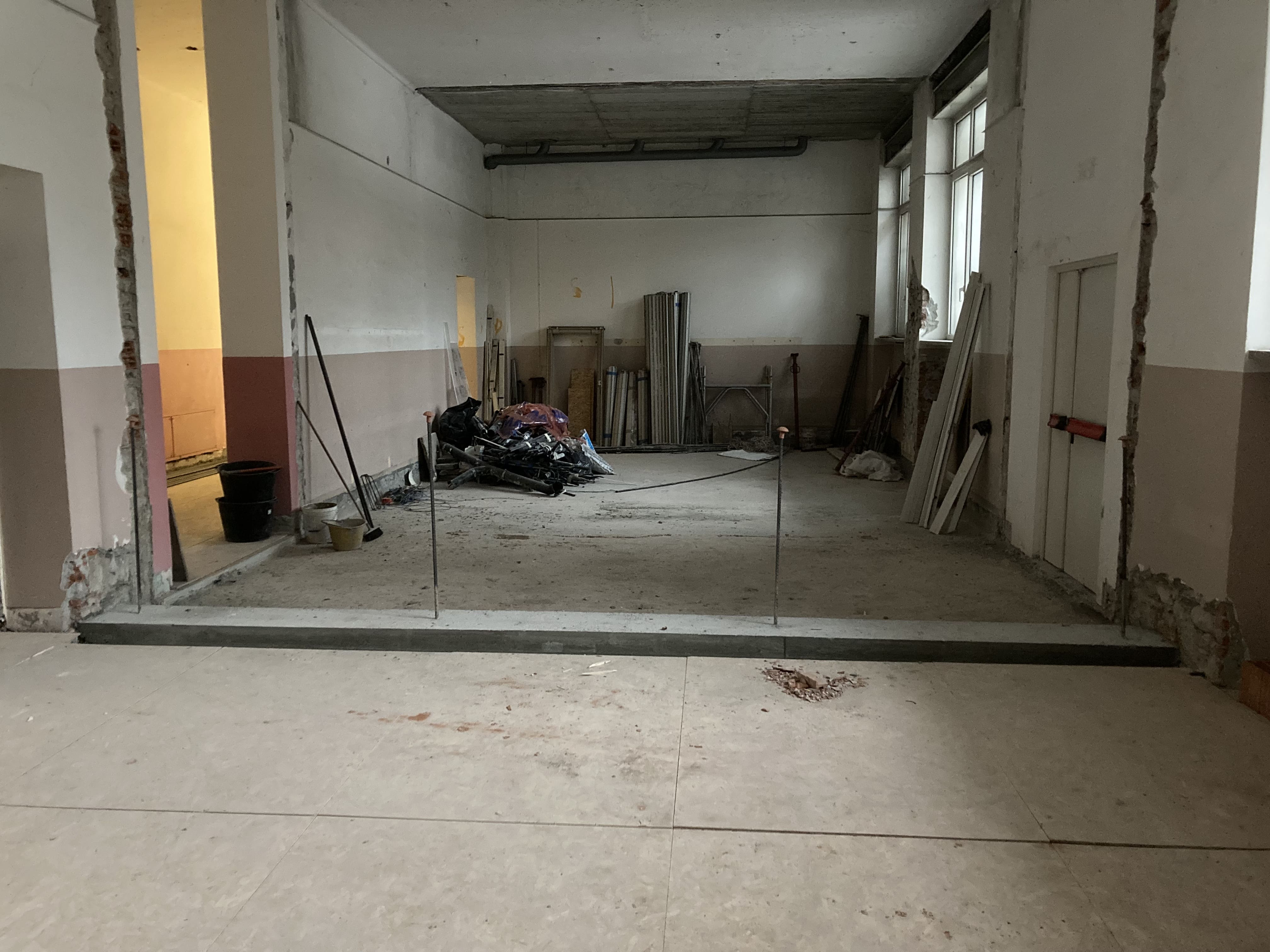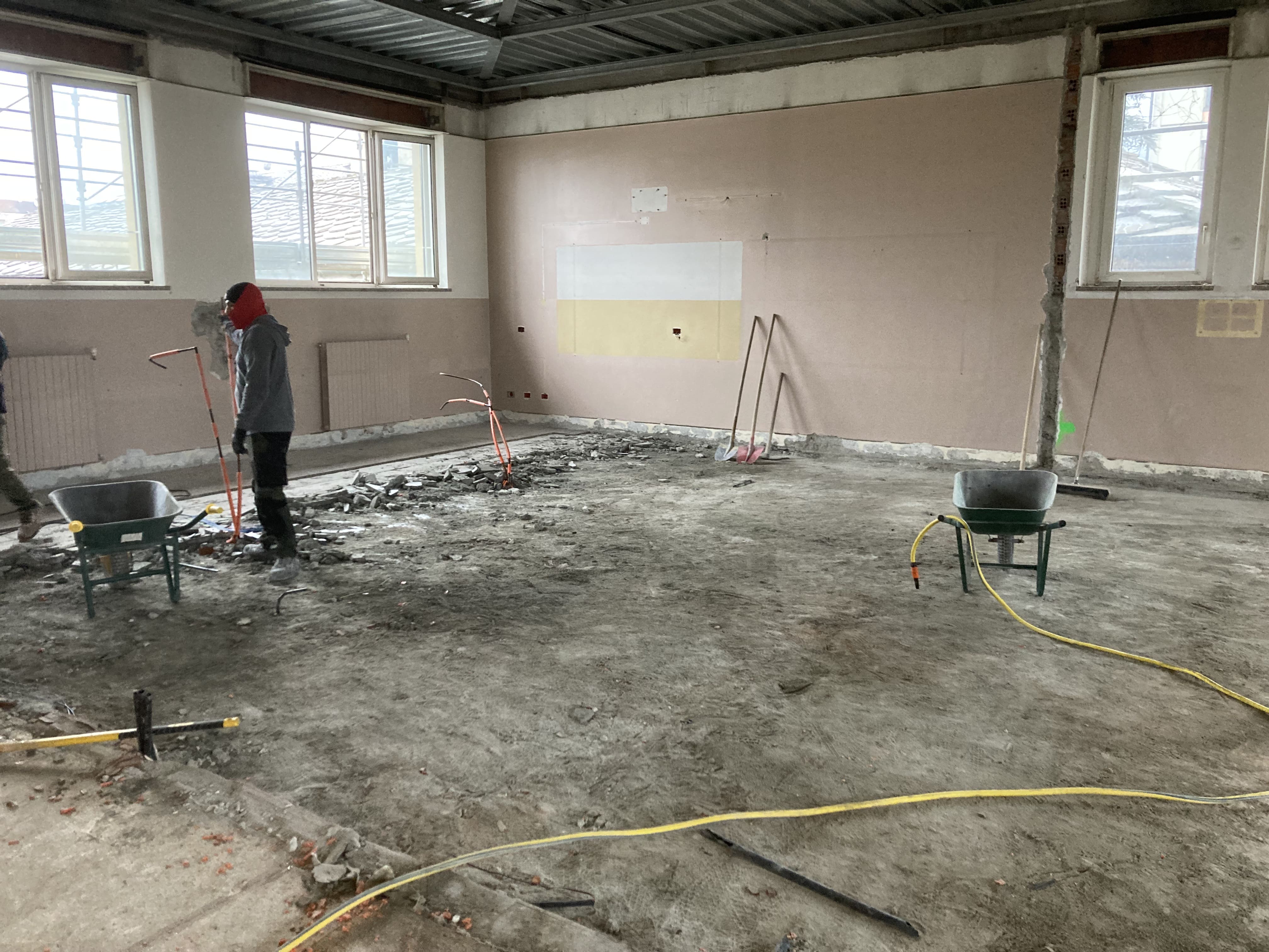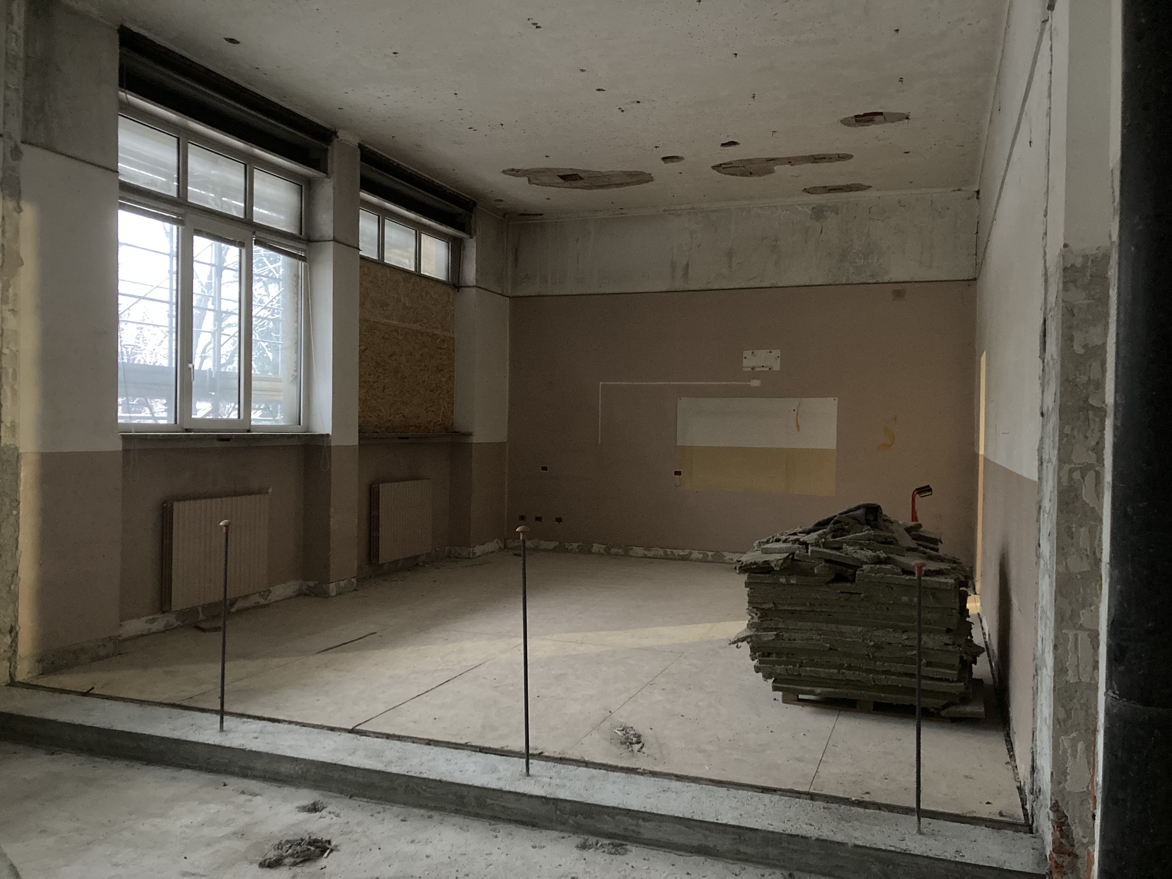 Le demolizioni interne si avviano verso la conclusione, con la rimozione delle tramezze al secondo piano. Le macerie vengono progressivamente raccolte e smaltite nel rispetto delle normative vigenti, mantenendo il cantiere ordinato e in sicurezza.